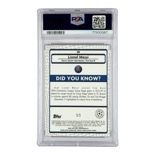 Lionel Messi 2021-22 Topps Chrome Merlin UEFA Red Wave Refractor 5/5 #30 PSA 10