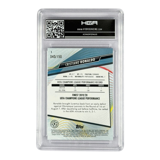 Cristiano Ronaldo 2020-21 Topps Finest UEFA Champions League Blue Refractor #1 040/150 HGA 9.5