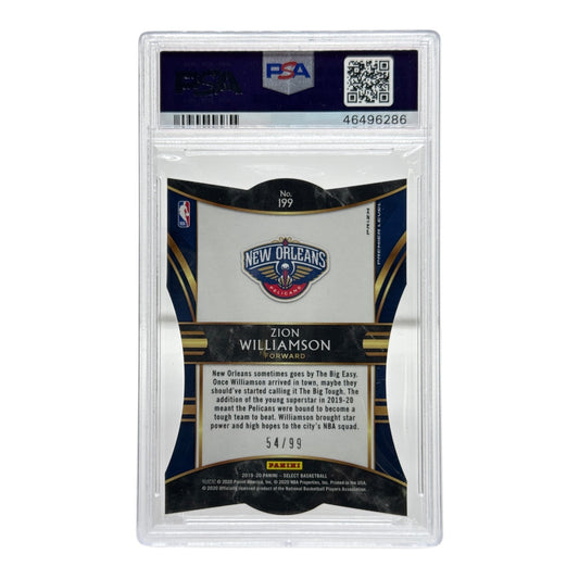 Zion Williamson 2019-20 Panini Select Purple Die-Cut 54/99 Rookie RC #199 PSA 10