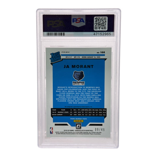 Ja Morant 2019-20 Panini Donruss Optic Rookie RC Auto FOTL Purple Stars 09/49 #168 PSA 10
