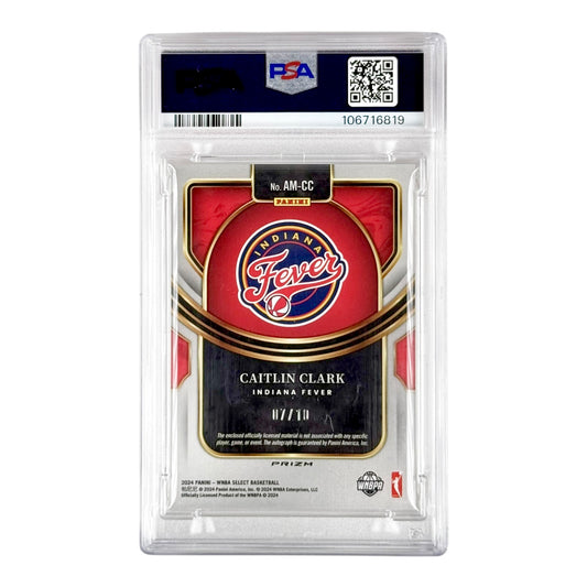 Caitlin Clark 2024 Select WNBA Rookie RC Patch Auto Gold 7/10 RPA #AMCC PSA 7 Auto 10