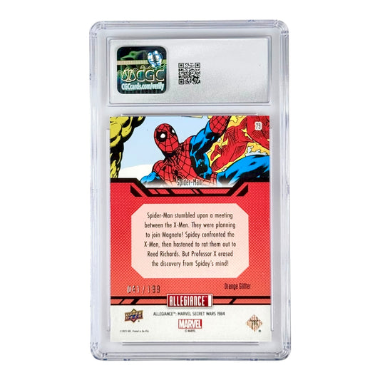 Spider Man 2024 Upper Deck Marvel Secret Wars 1984 Orange Glitter 041/199 #79 CGC 9