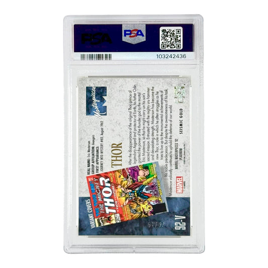 Thor 2024 Skybox Marvel Masterpieces Seismic Gold 64/92 #92V PSA 10
