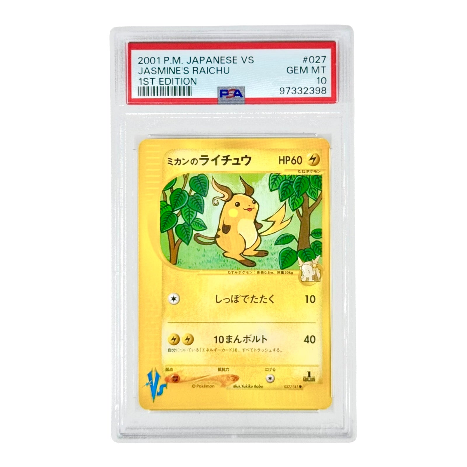 Jasmine's Raichu 2001 Pokemon Japanese VS 1st Edition #027 PSA 10