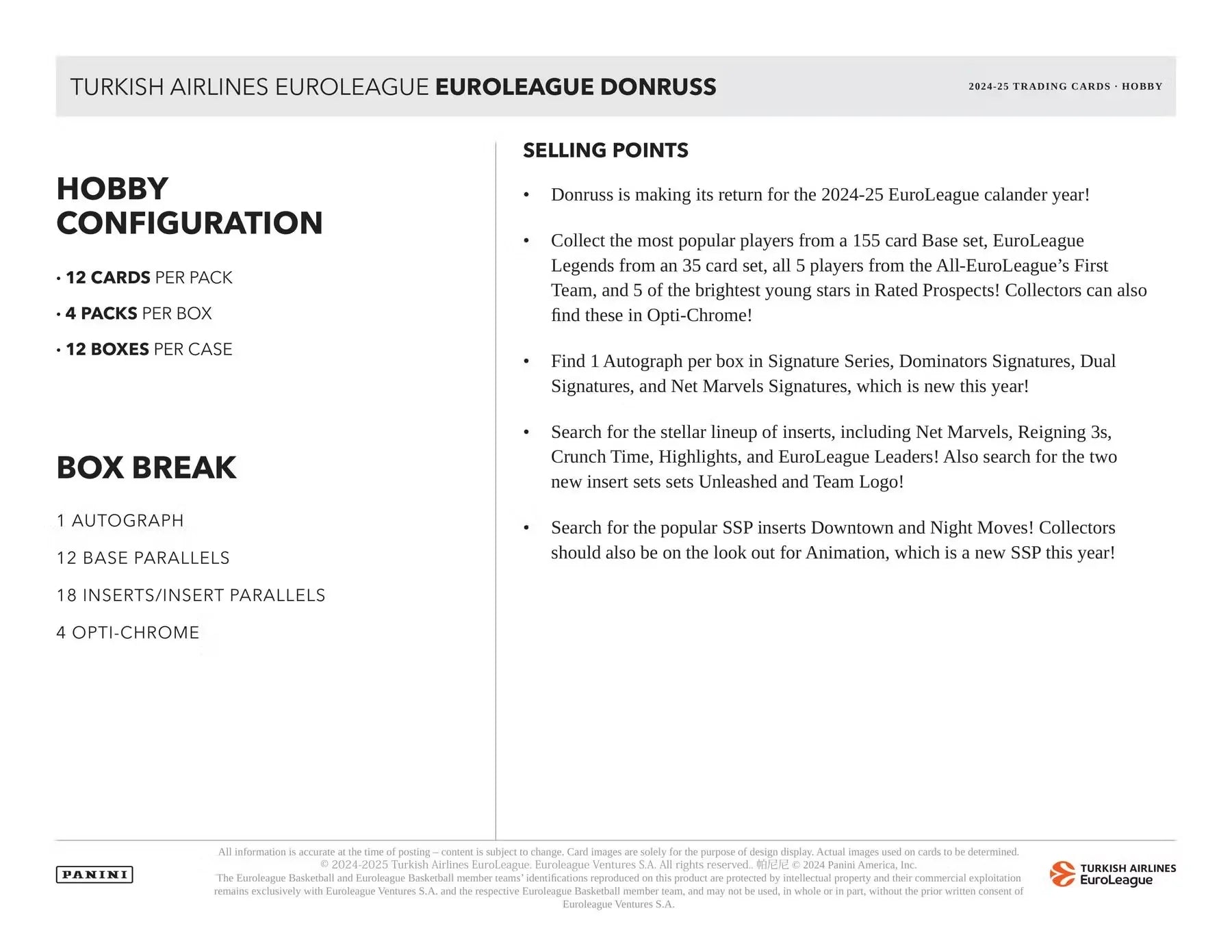 2024-25 Donruss Euroleague Basketball Hobby Box