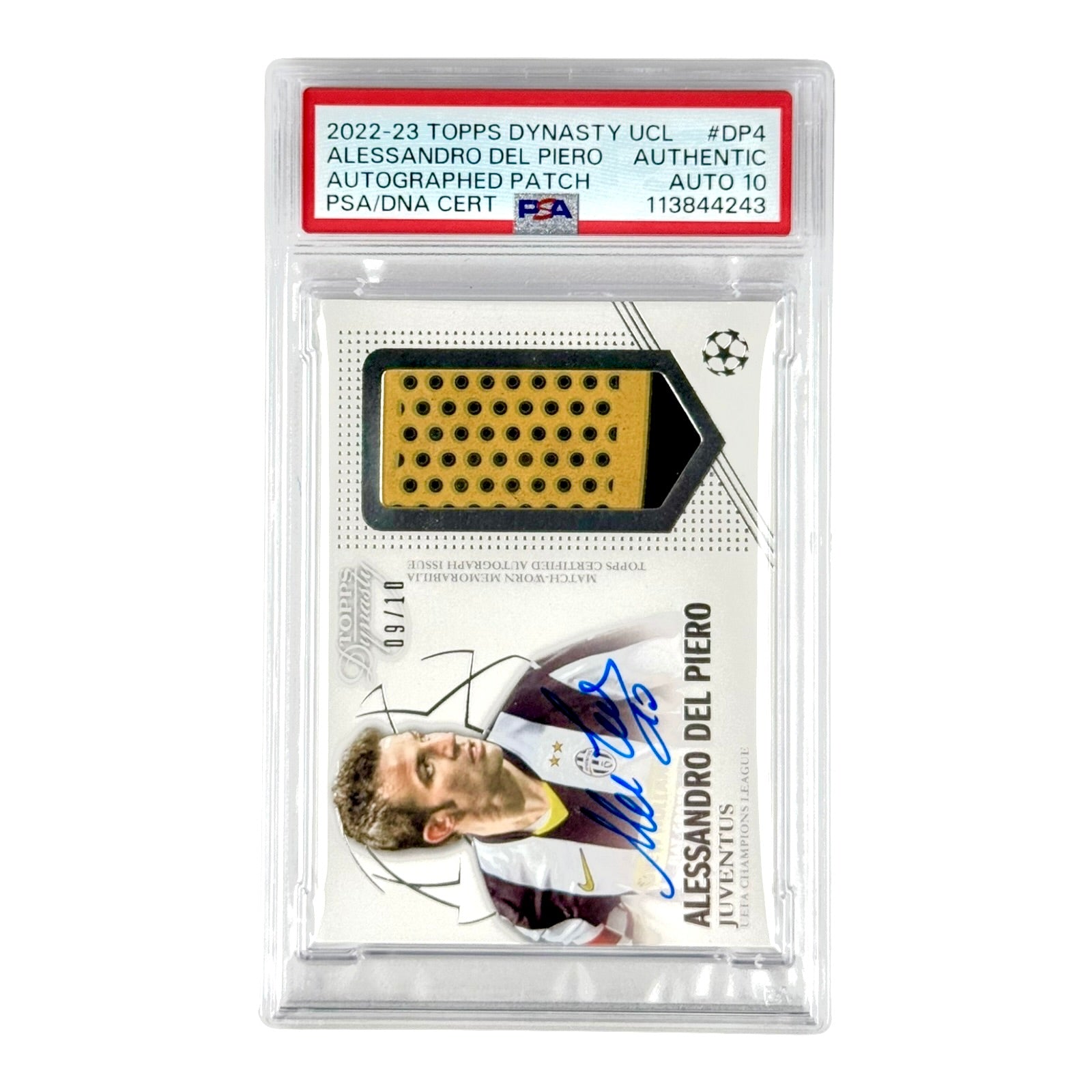 Alessandro Del Piero 2022-23 Topps Dynasty UCL Patch Auto 09/10 #DP4 PSA Auto 10