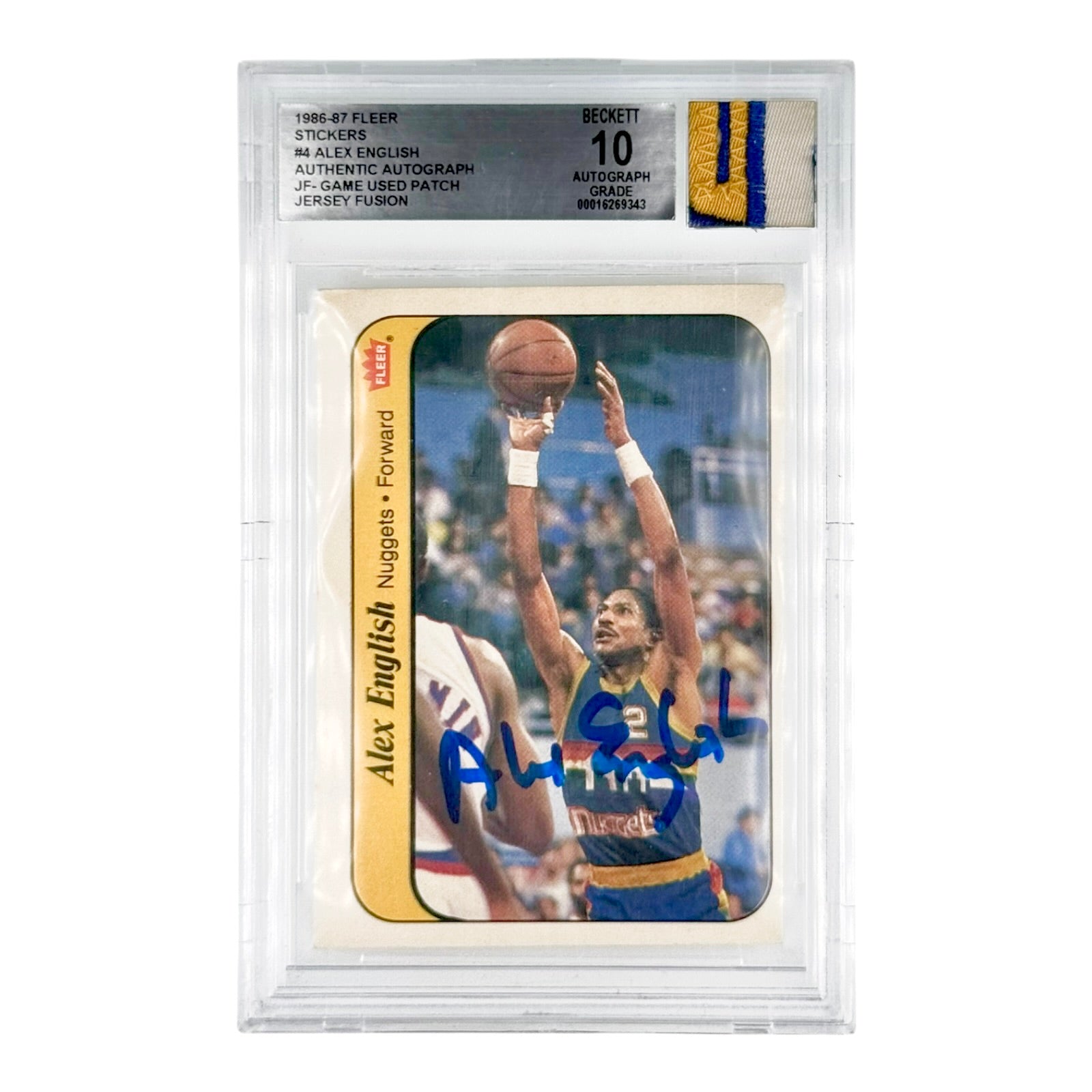 Alex English 1986-87 Fleer Game Used Patch BGS Auto 10