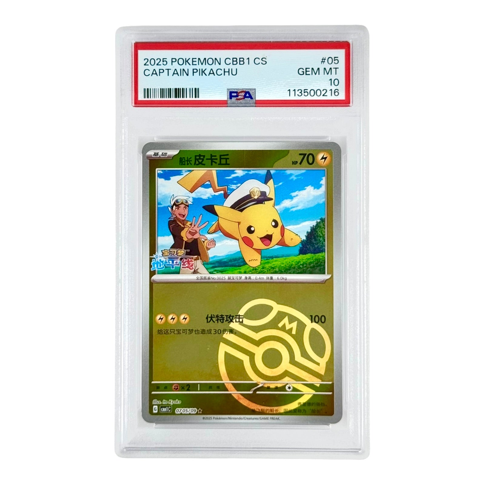 Captain Pikachu 2025 Pokemon Simplified Chinese CBB1 CS Master Ball Reverse Holo #05 PSA 10