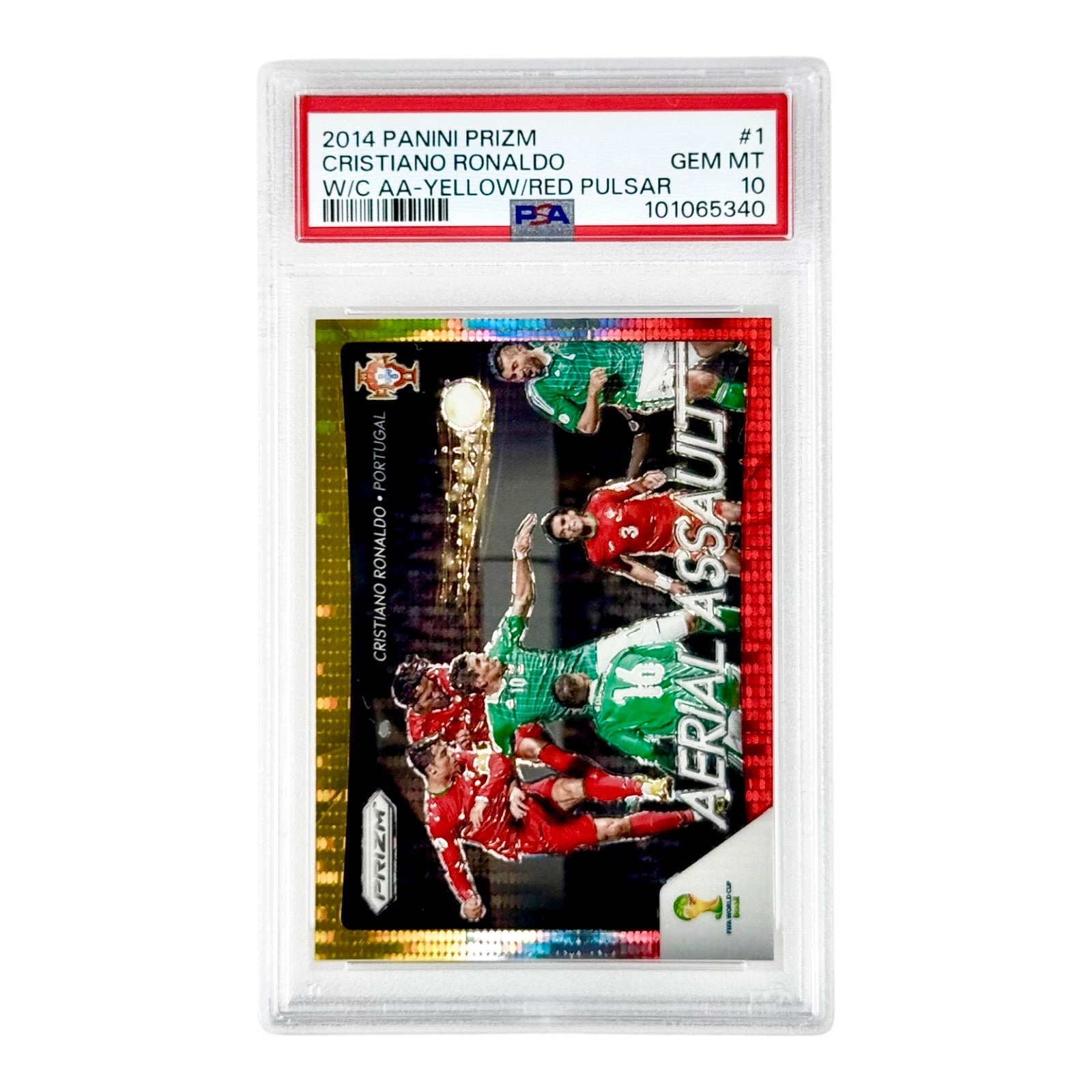 Cristiano Ronaldo 2014 Prizm World Cup Aerial Assault Yellow Red Pulsar #1 PSA 10
