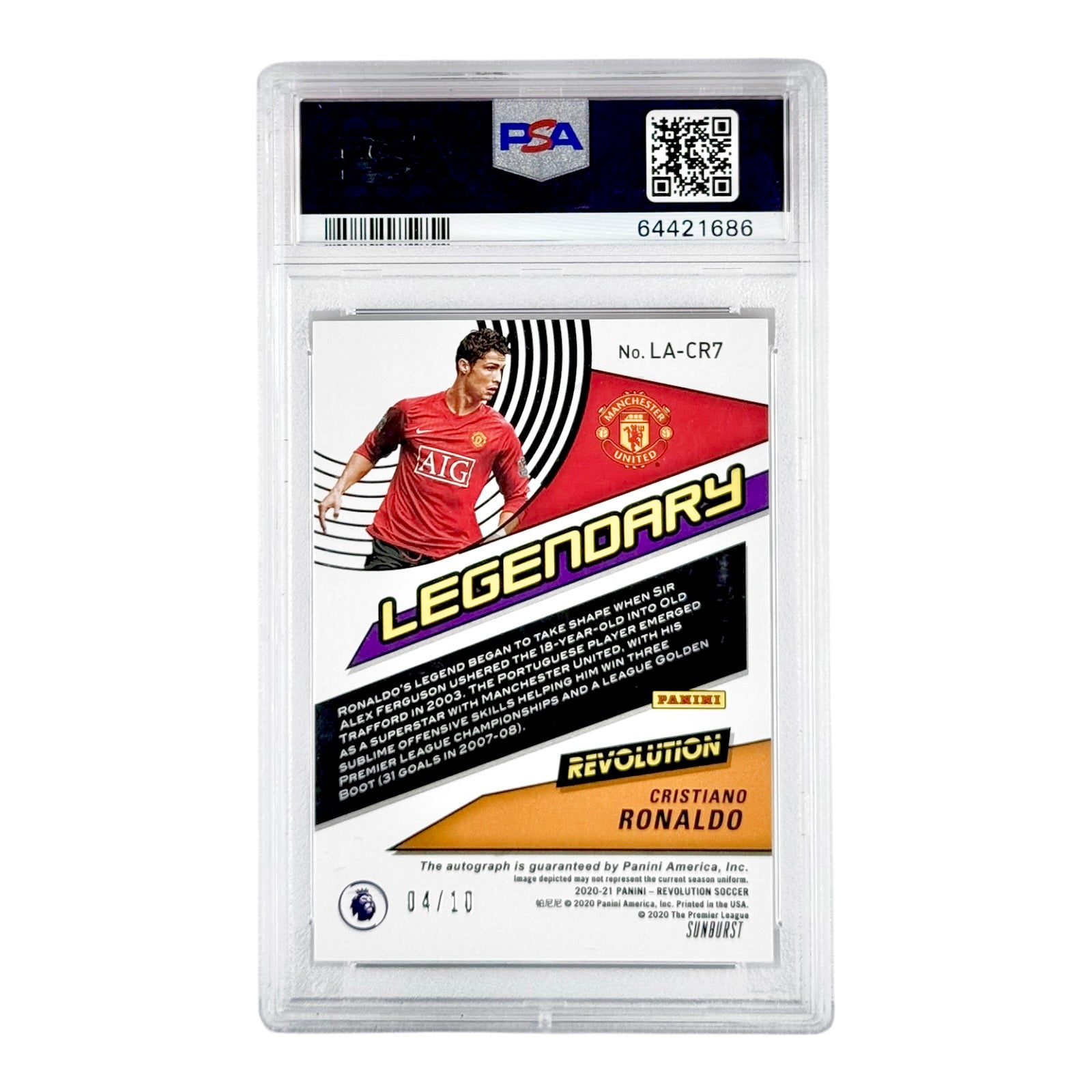 Cristiano Ronaldo 2020 Panini Revolution Premier League Auto Sunburst 04/10 #CR7 PSA 9