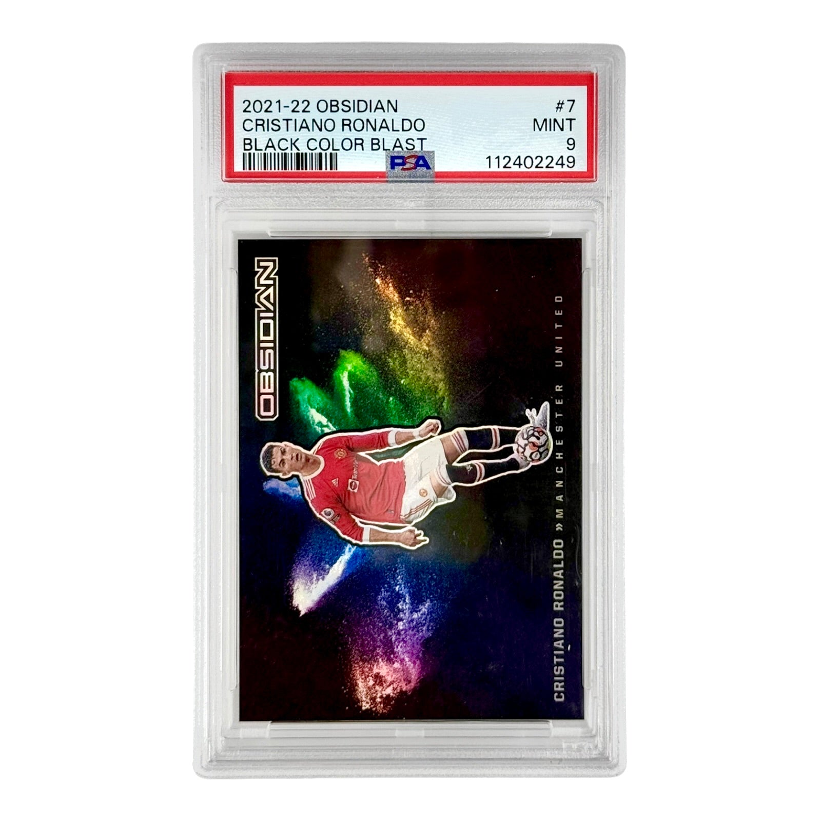 Cristiano Ronaldo 2021-22 Obsidian Black Color Blast #7 PSA 9