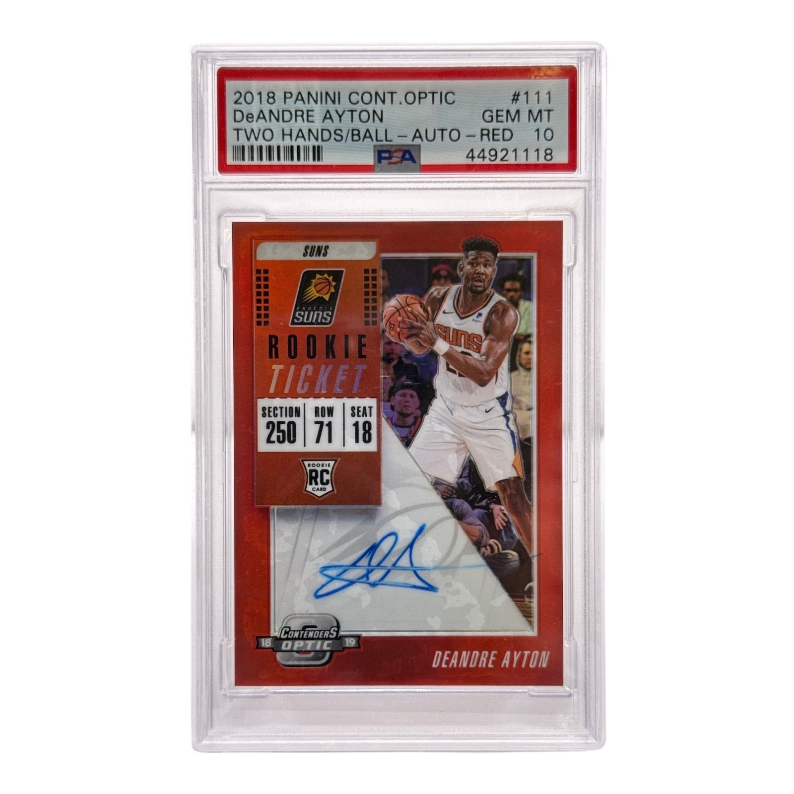 Deandre Ayton 2018-19 Panini Contenders Optic Rookie Ticket Auto Red 67/99 RC #111 PSA 10