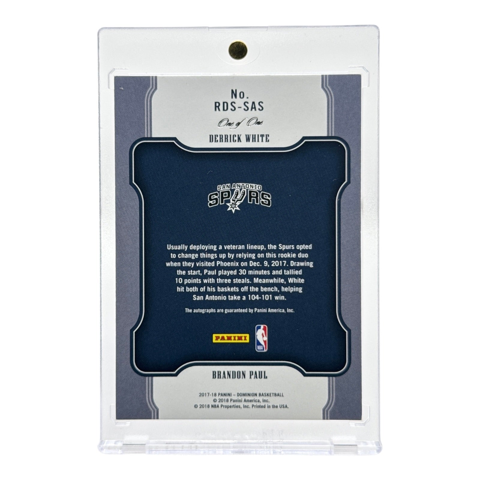 Derrick White 2017-18 Panini Dominion Dual Auto Rookie RC 1 of 1 #RDS-SAS