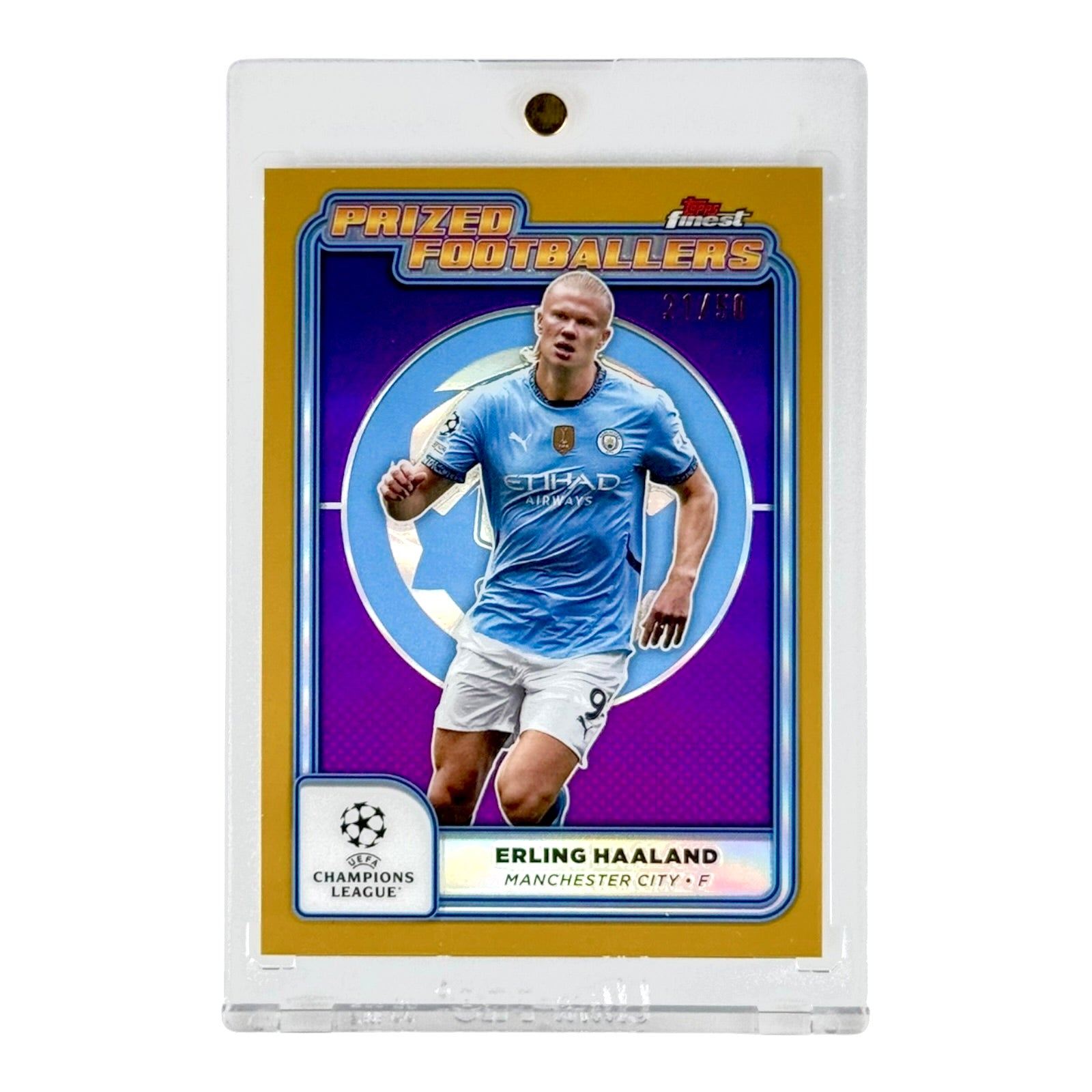 Erling Haaland 2025 Topps Finest UCL Prized Footballers 21/50 Gold Refractor #PF-22