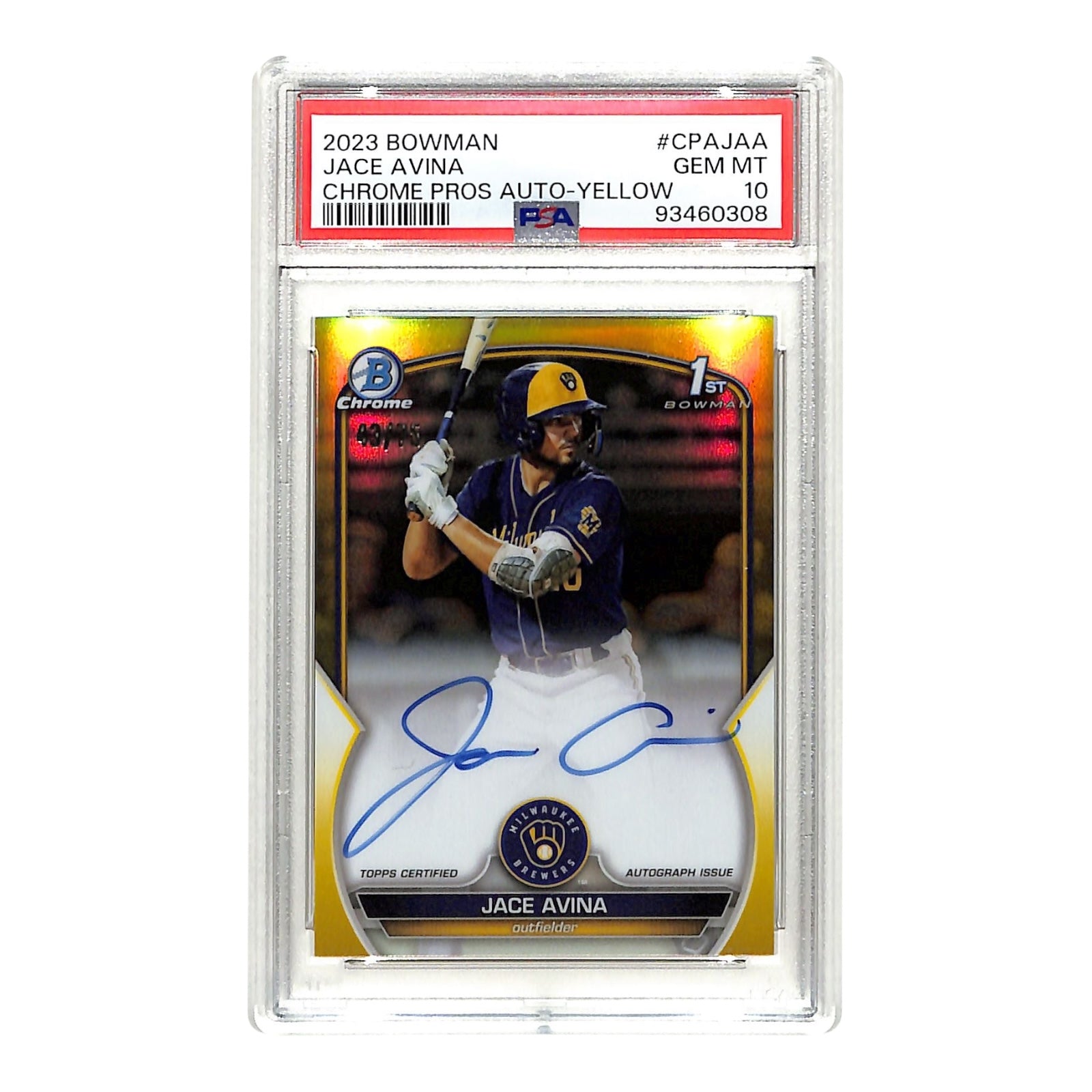 Jace Avina 2023 Bowman Chrome Prospect Auto Yellow 43/75 #CPAJAA PSA 10
