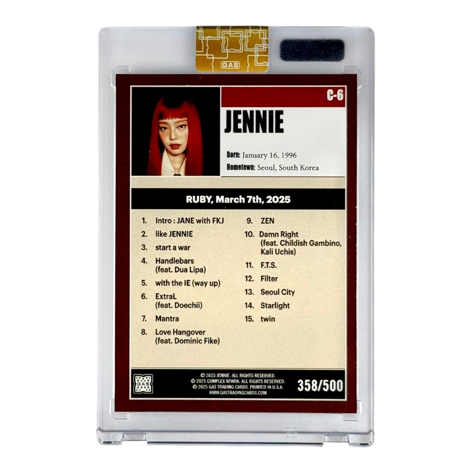 Jennie 2025 Gas Trading Cards Complex 358/500 #C-6