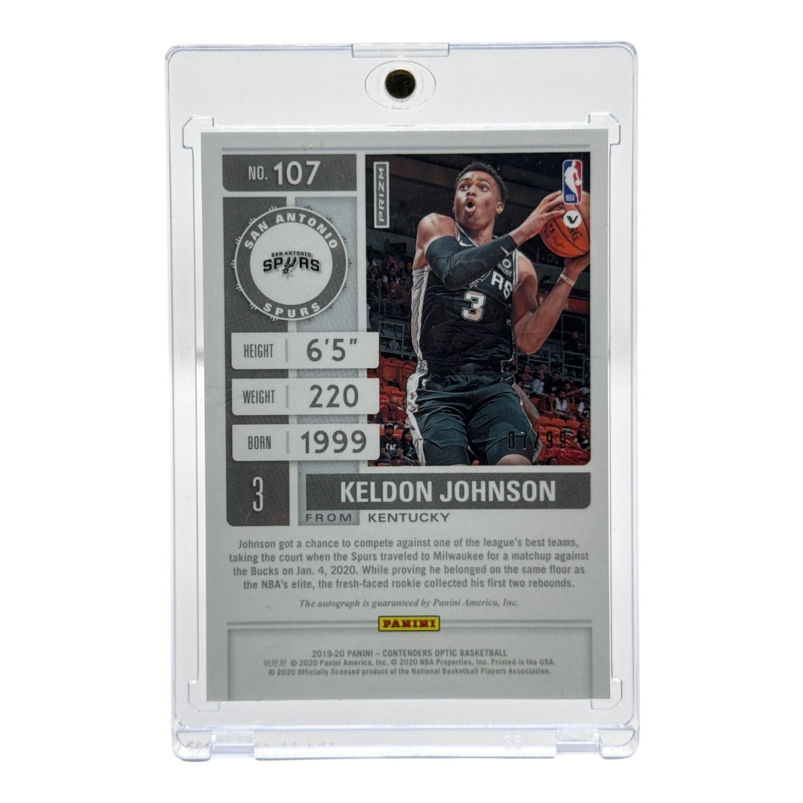 Keldon Johnson 2019-20 Panini Contenders Optic Rookie RC Auto Blue 07/99 #107