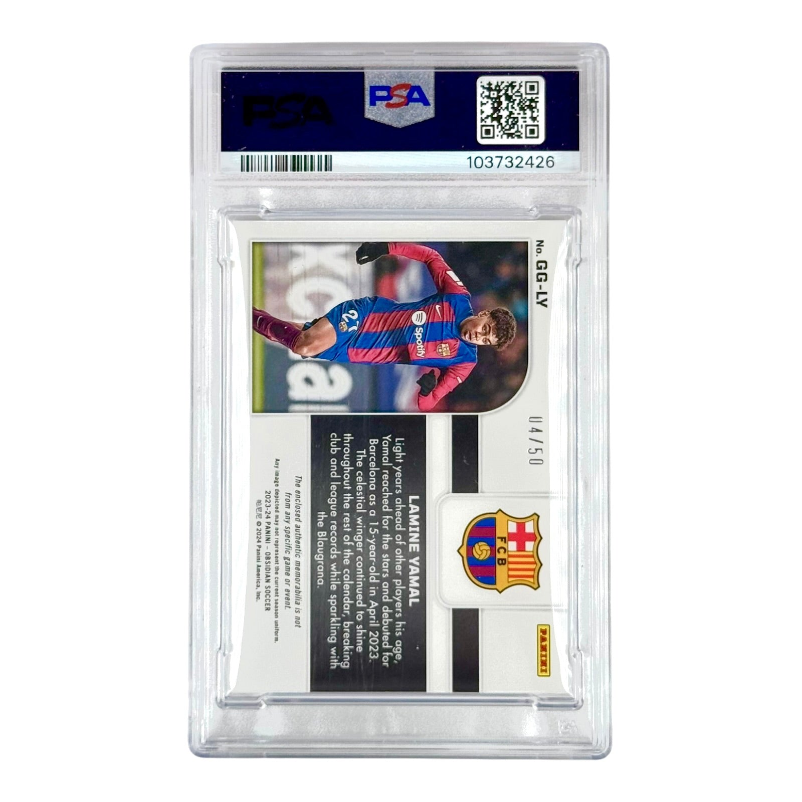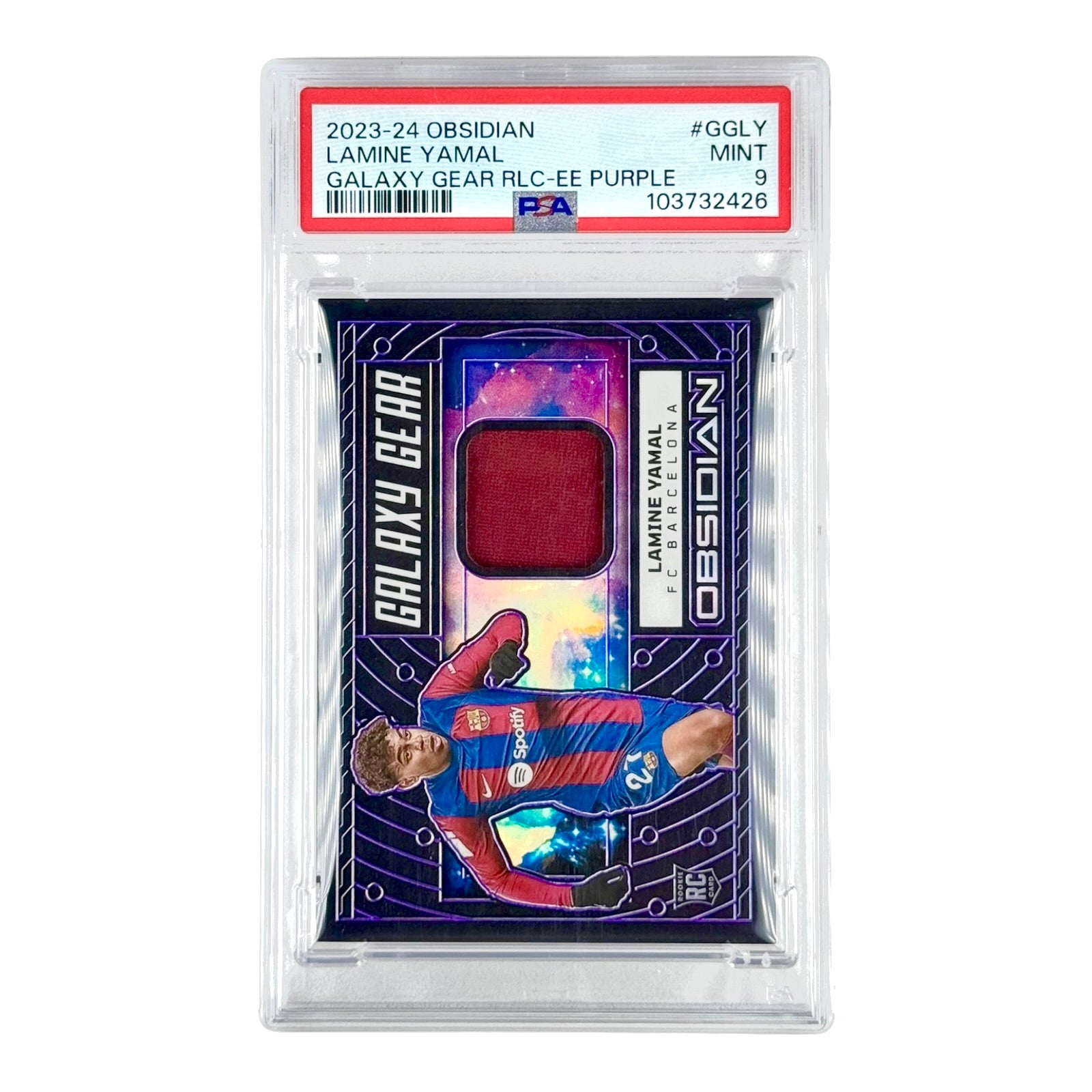 Lamine Yamal 2023-24 Obsidian Galaxy Gear Jersey Relic Purple 04/50 Rookie RC #GGLY PSA 9