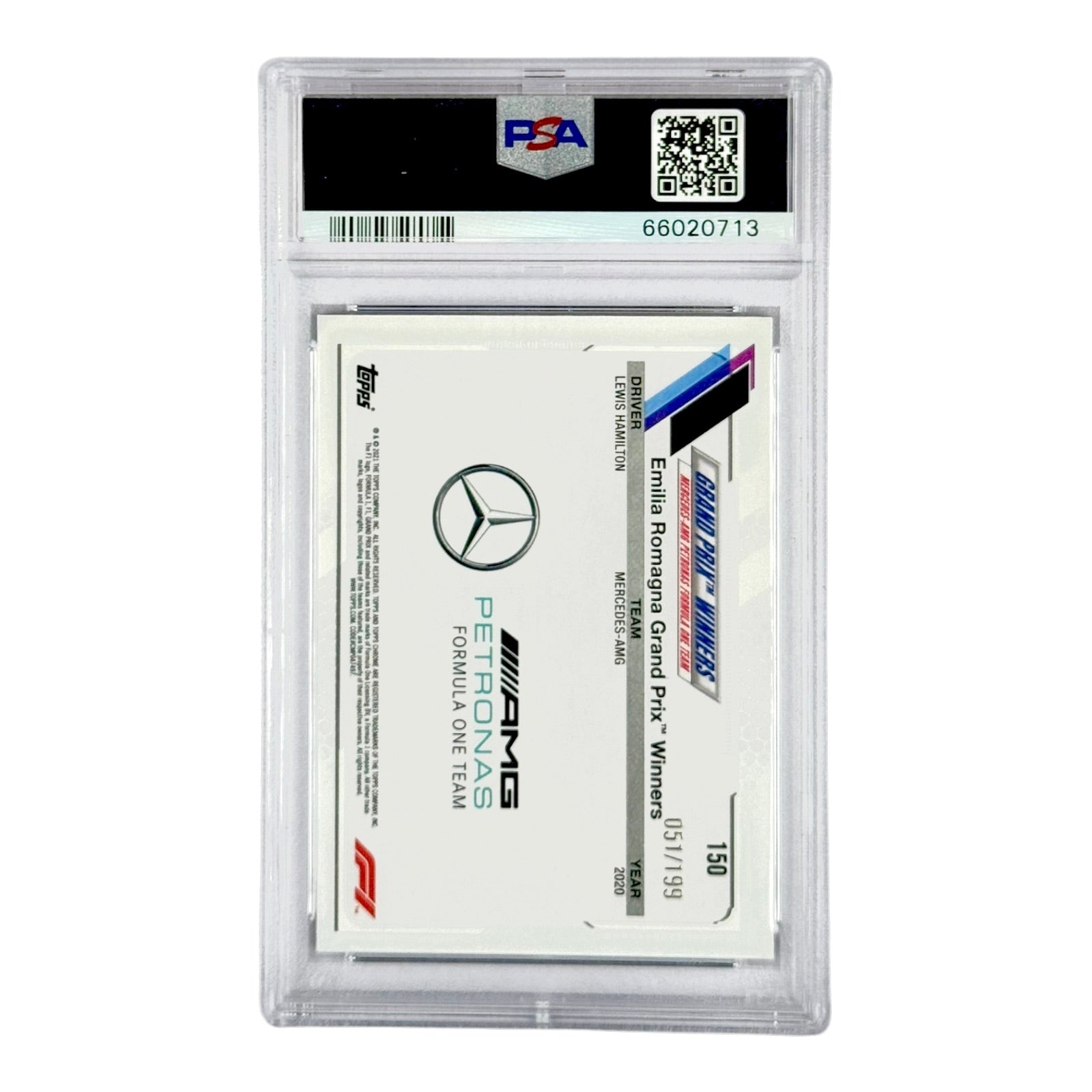 Lewis Hamilton 2021 Topps Chrome F1 Purple Checker Flag Ref. 051/199 #150 PSA 9