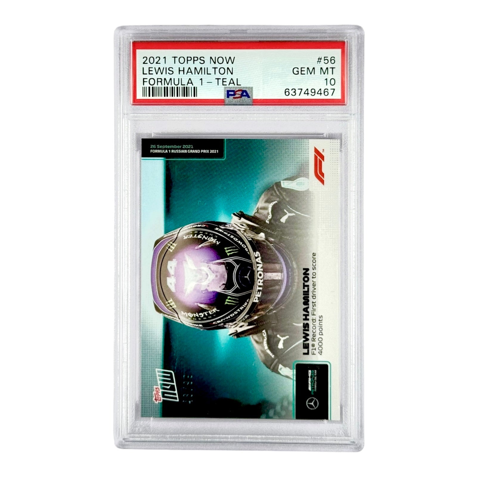Lewis Hamilton 2021 Topps Now Formula 1 Teal 48/99 #56 PSA 10