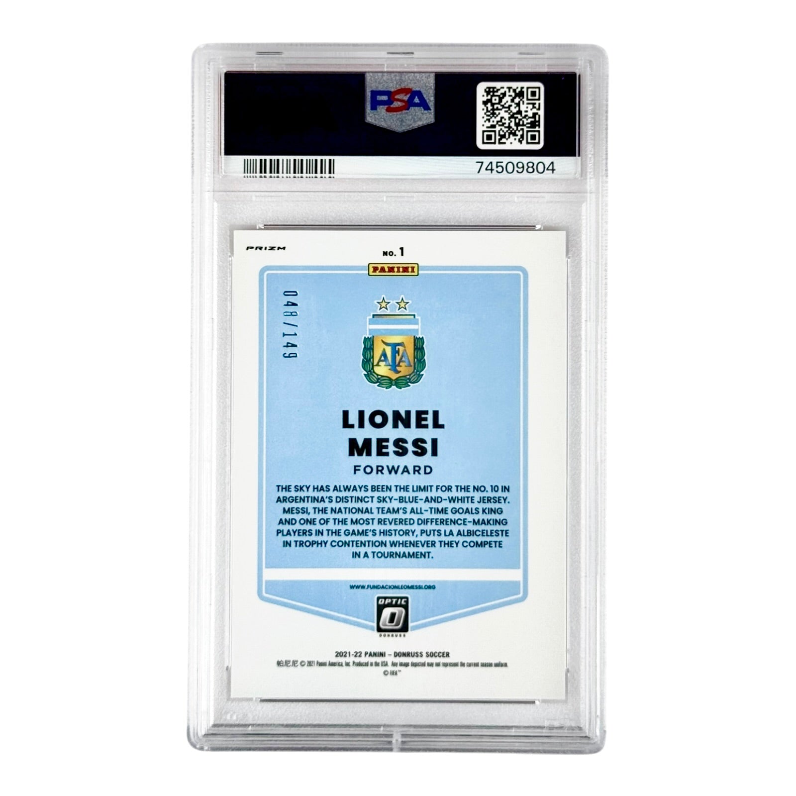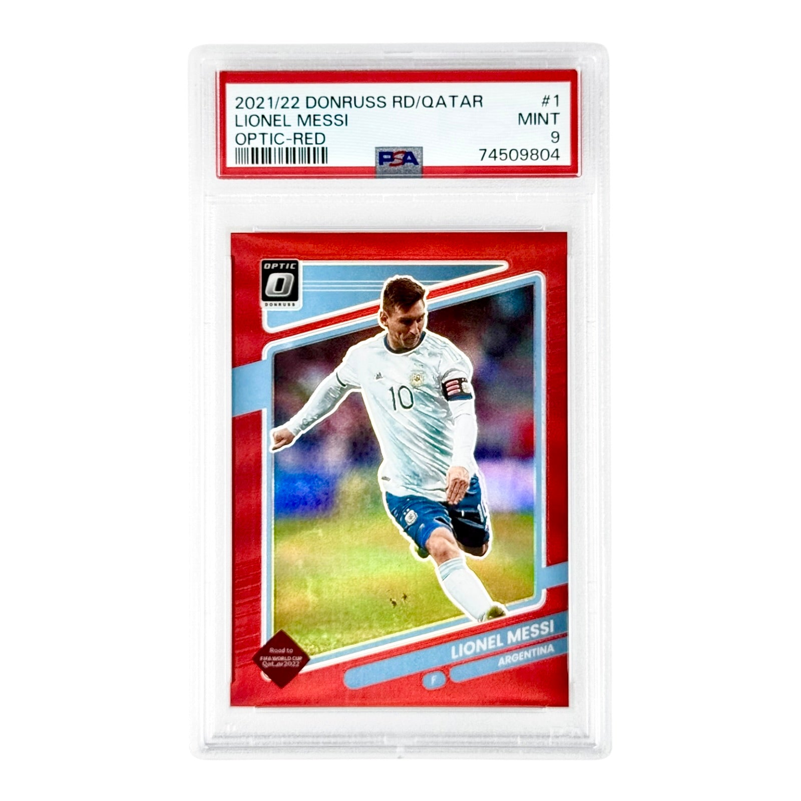 Lionel Messi 2021-22 Donruss Optic World Cup Qatar Red 048/149 #1 PSA 9