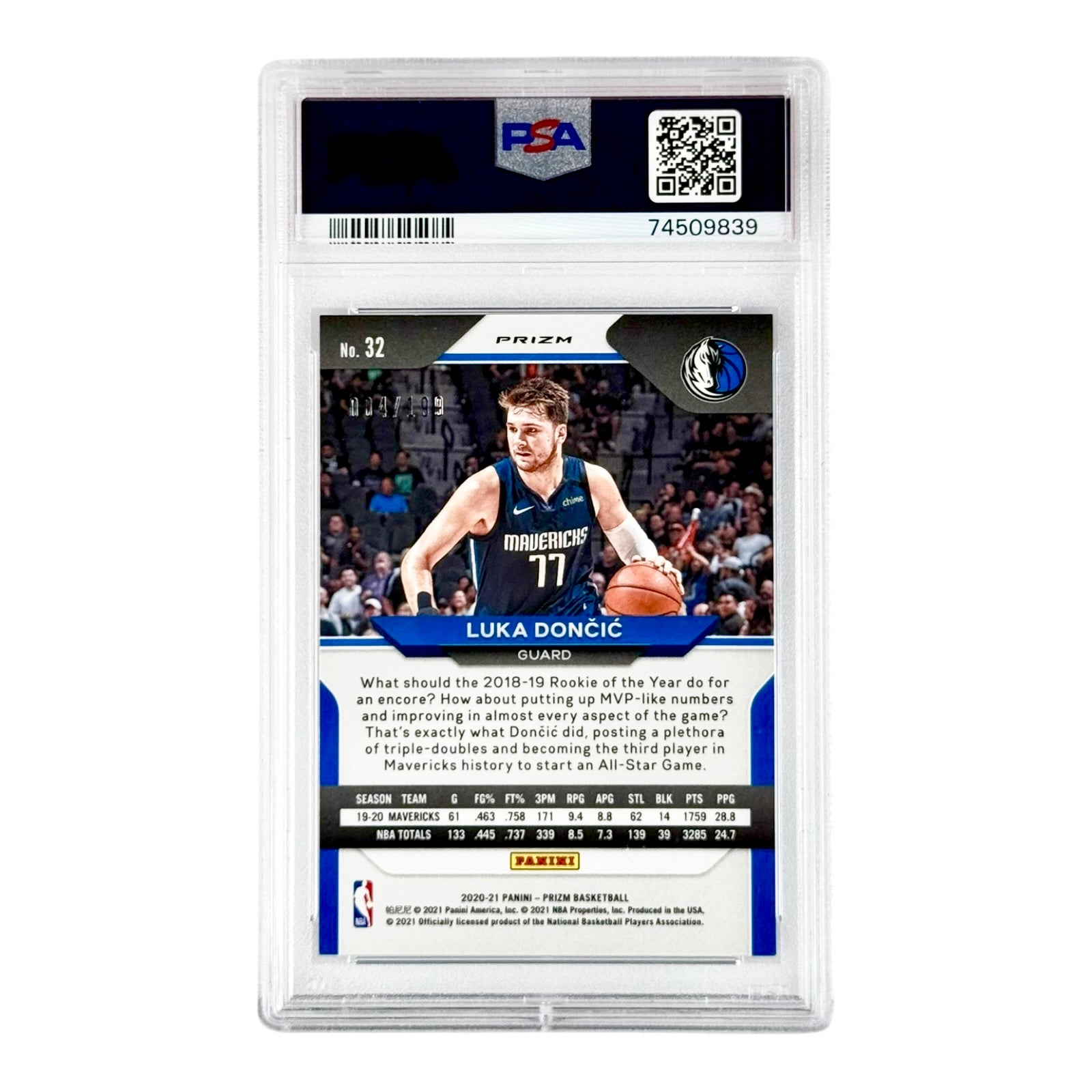 Luka Doncic 2020-21 Prizm Blue 004/199 #32 PSA 9
