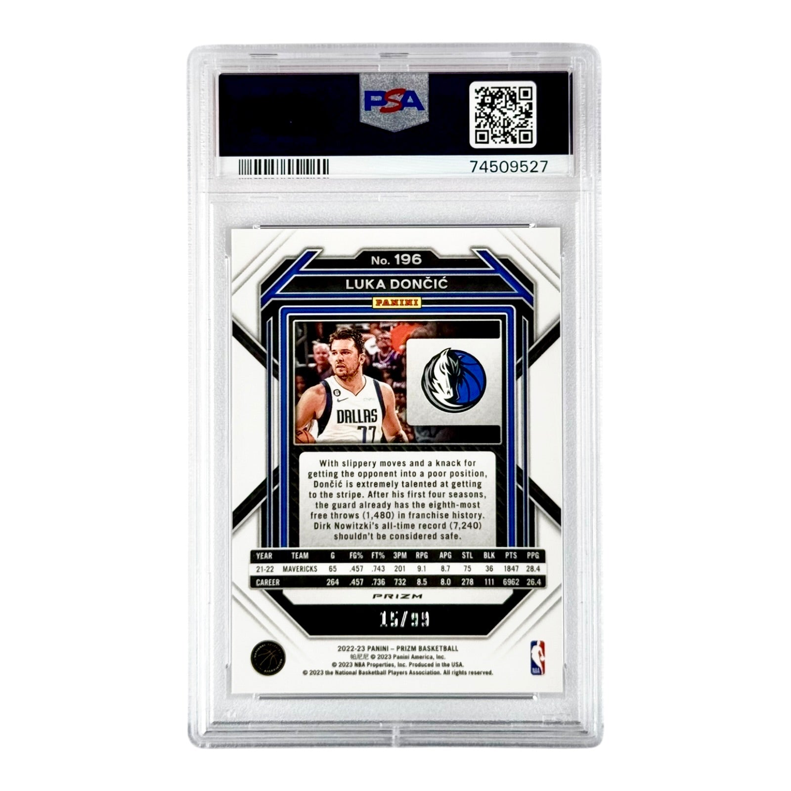 Luka Doncic 2022-23 Prizm Purple 15/99 #196 PSA 9