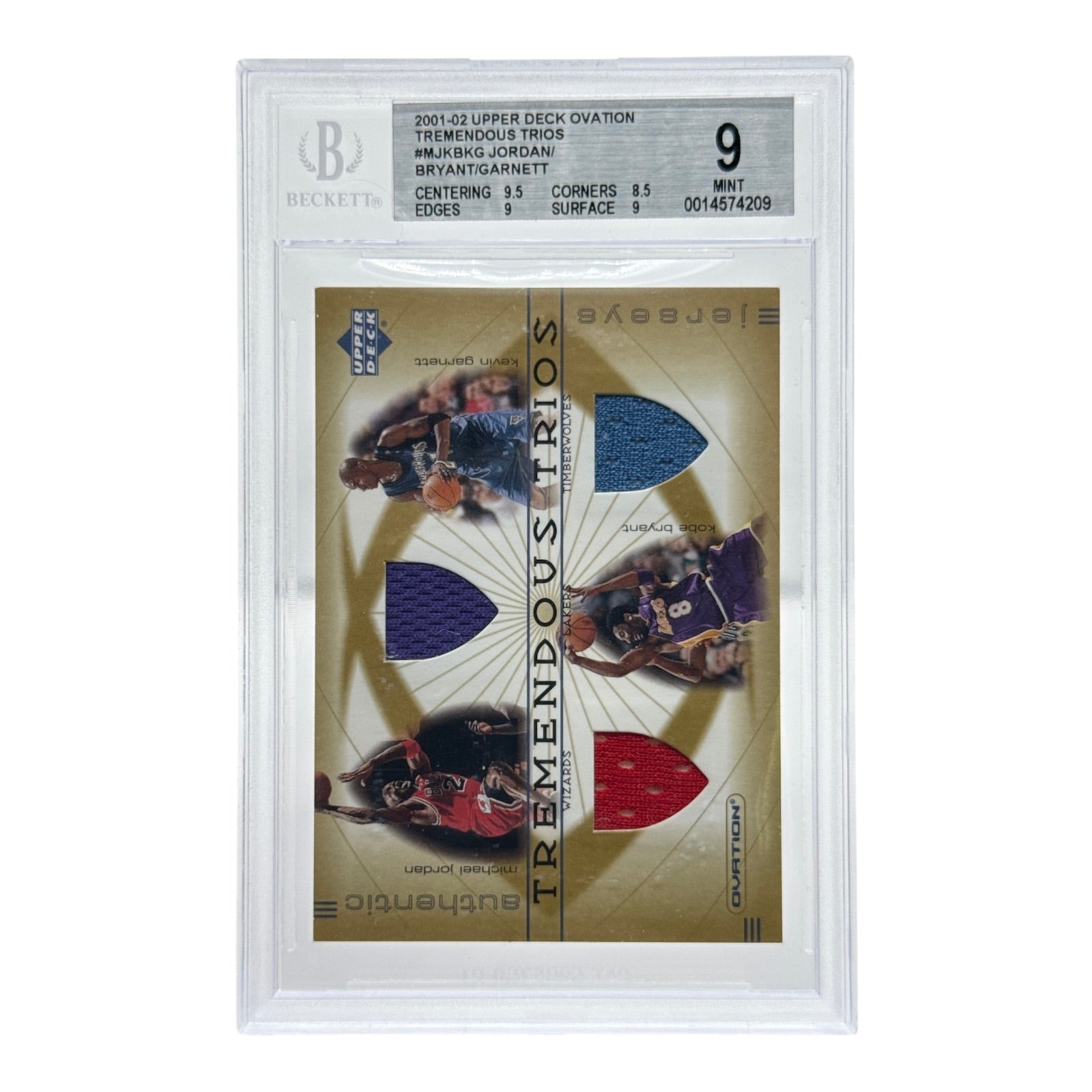 Michael Jordan Kobe Bryant Kevin Garnett 2001-02 Upper Deck Ovation Tremendous Trios BGS 9