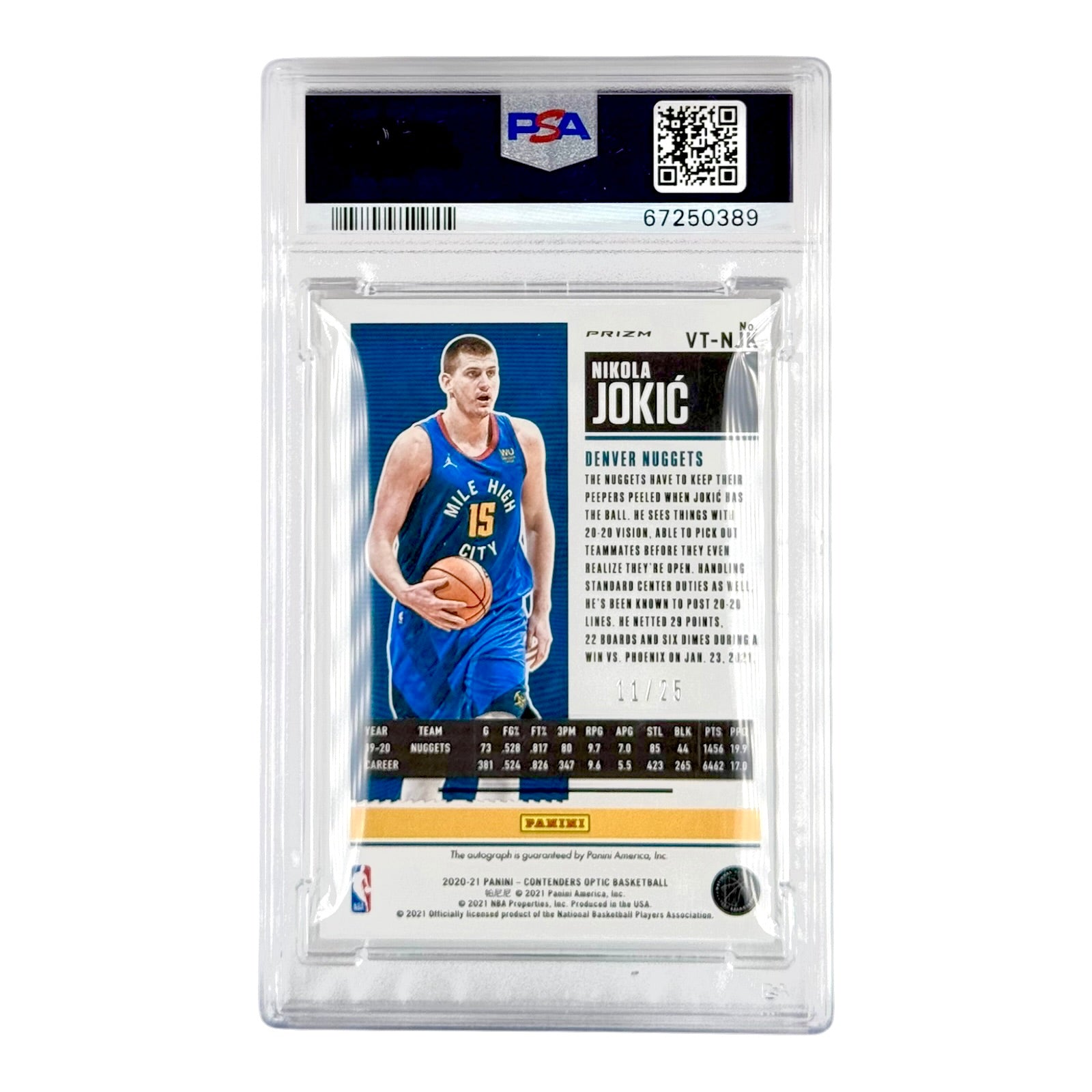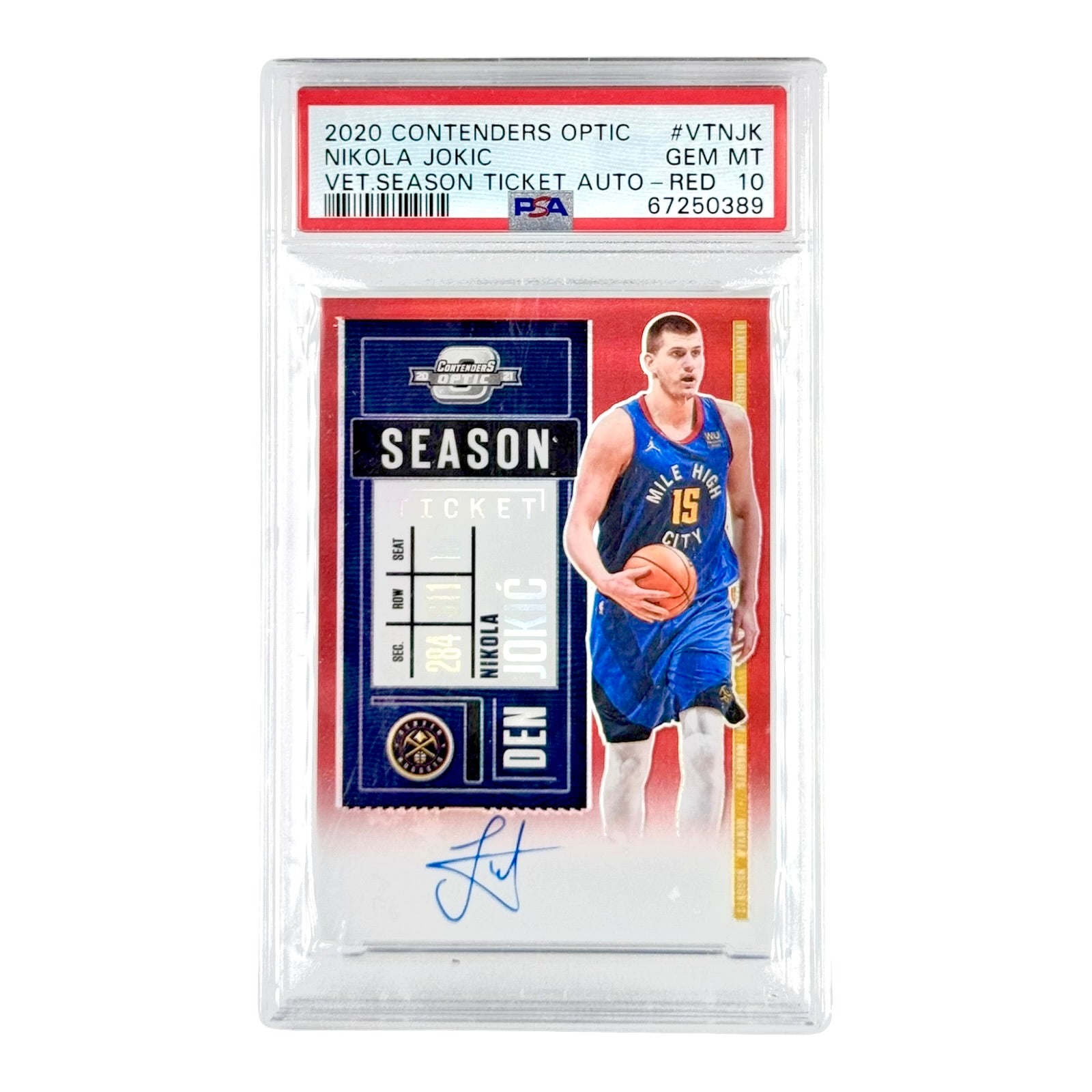 Nikola Jokic 2020-21 Panini Contenders Optic Veteran Season Ticket Auto Red 11/25 #VTNJK PSA 10