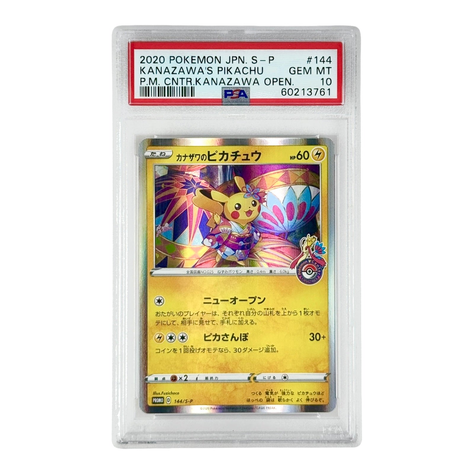 Pikachu 2020 Pokemon Japanese Pokemon Center Kanazawa Promo Holo #144 PSA 10