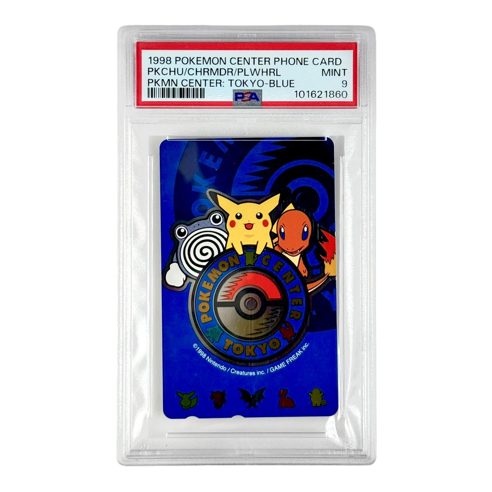 Pikachu/Charmendar/Whirlpool 1998 Pokemon Center Promo Phone Card Blue PSA 9