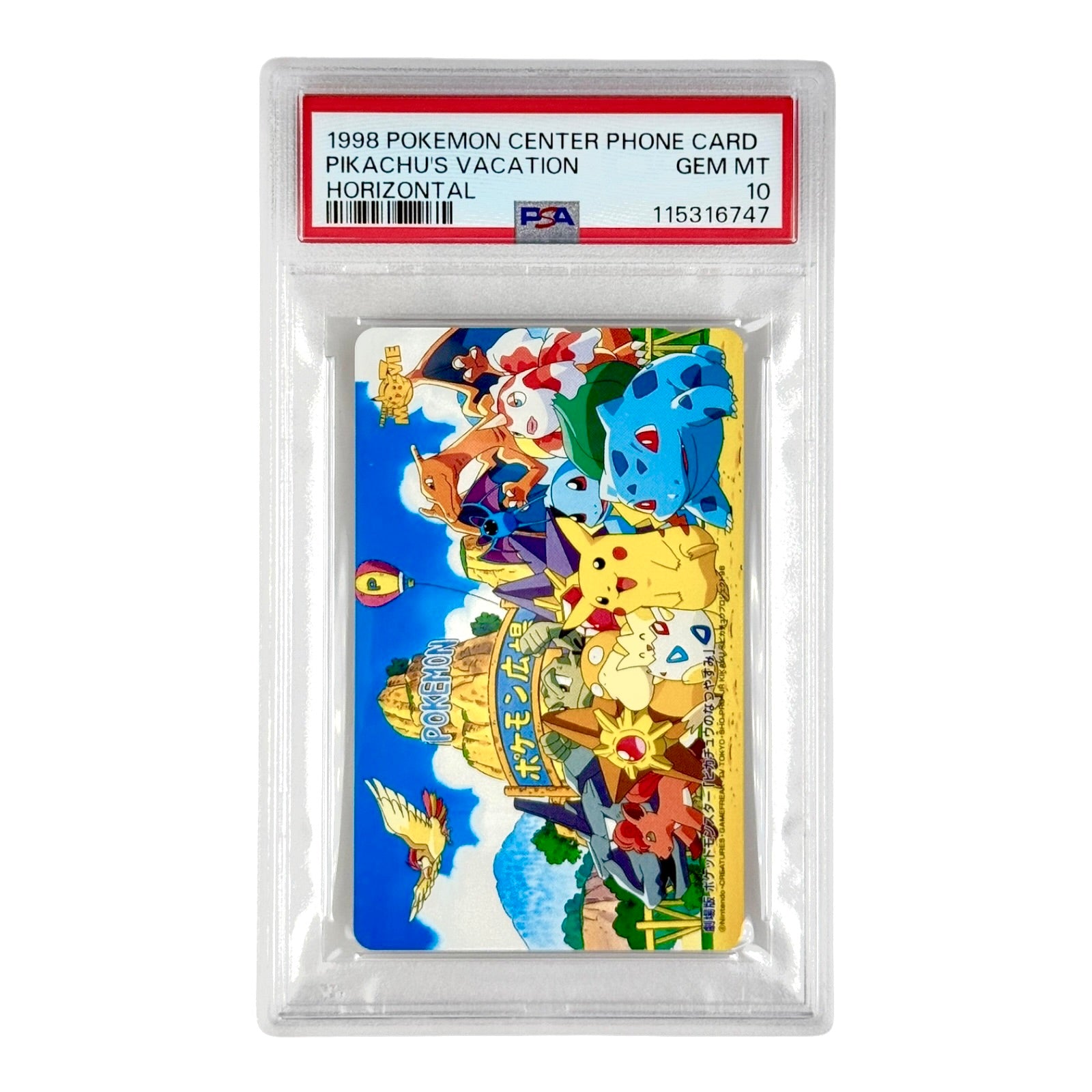 Pikachu's Vacation Horizontal 1998 Pokemon Center Phone Card Promo PSA 10