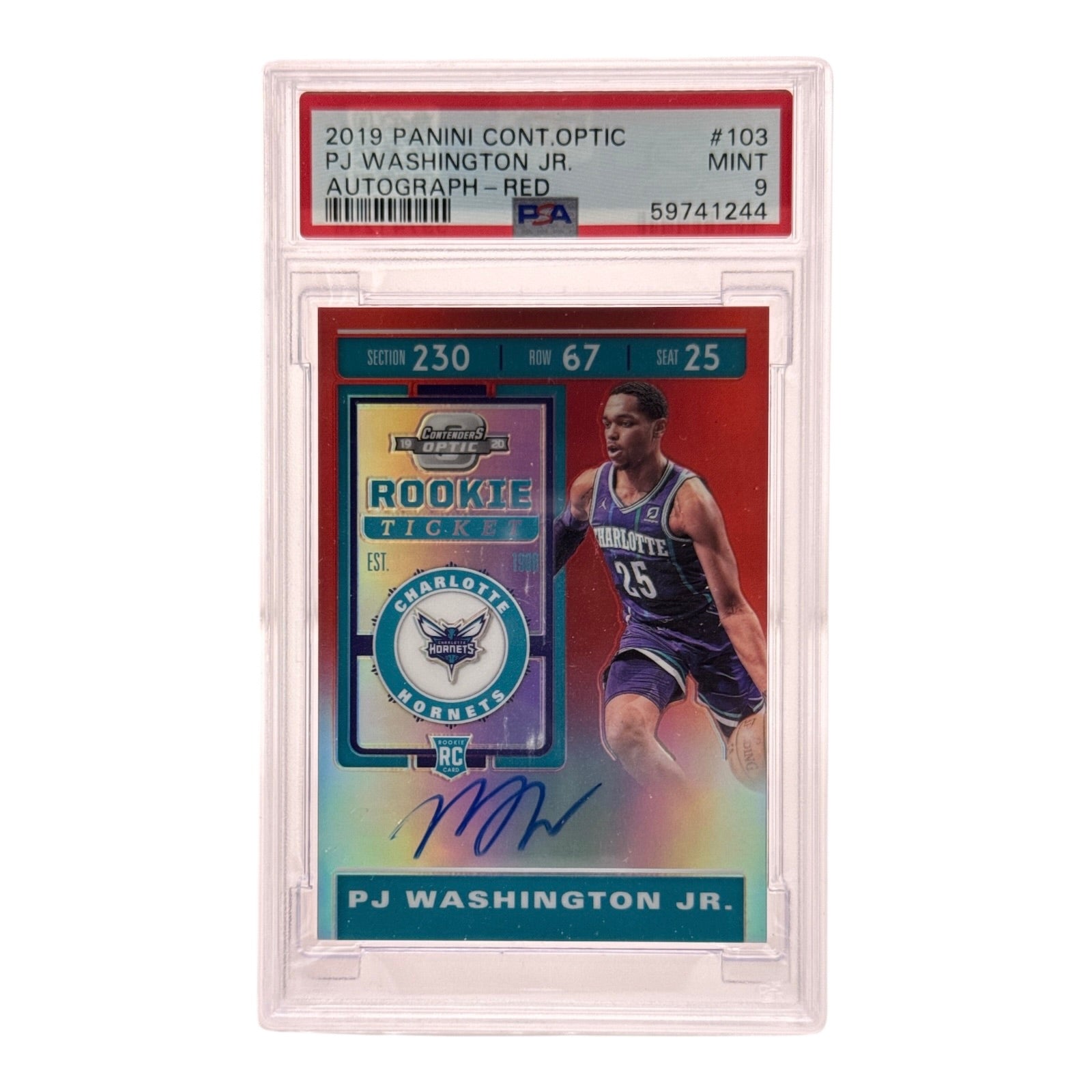 PJ Washington JR. 2019-20 Panini Contenders Optic On Card Auto Red 33/75 Rookie RC #103 PSA 9