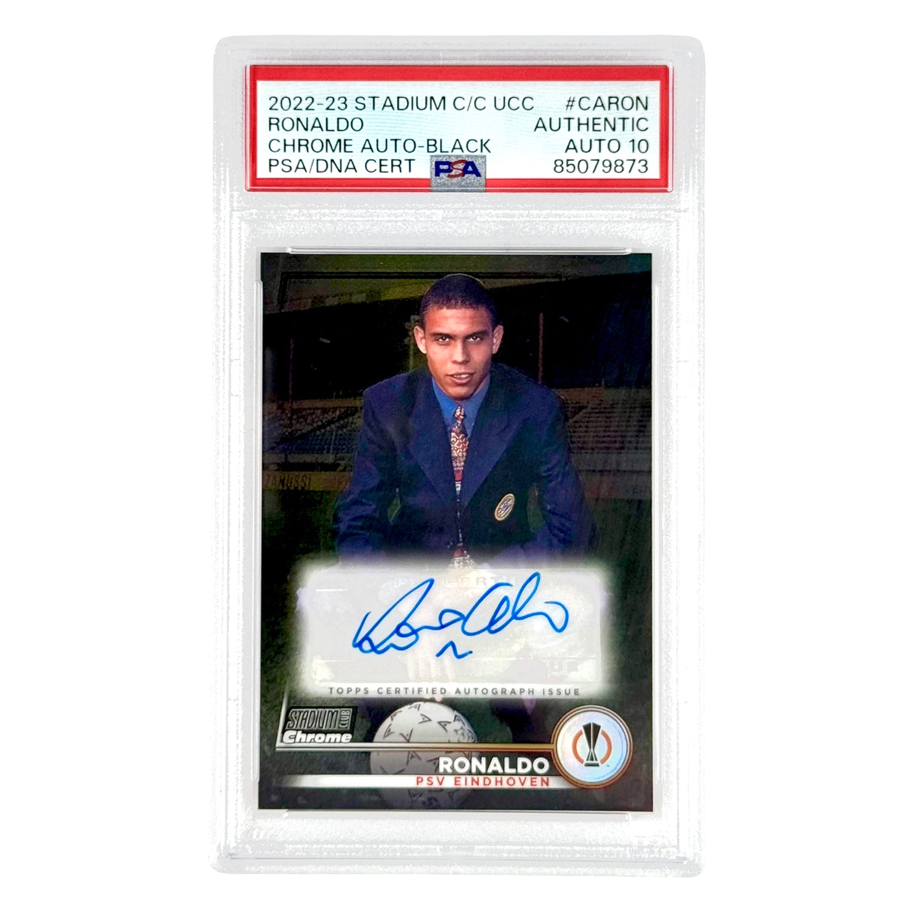 Ronaldo 2022-23 Topps Chrome Stadium Club UCC Auto Black 06/10 #CARON PSA Auto 10