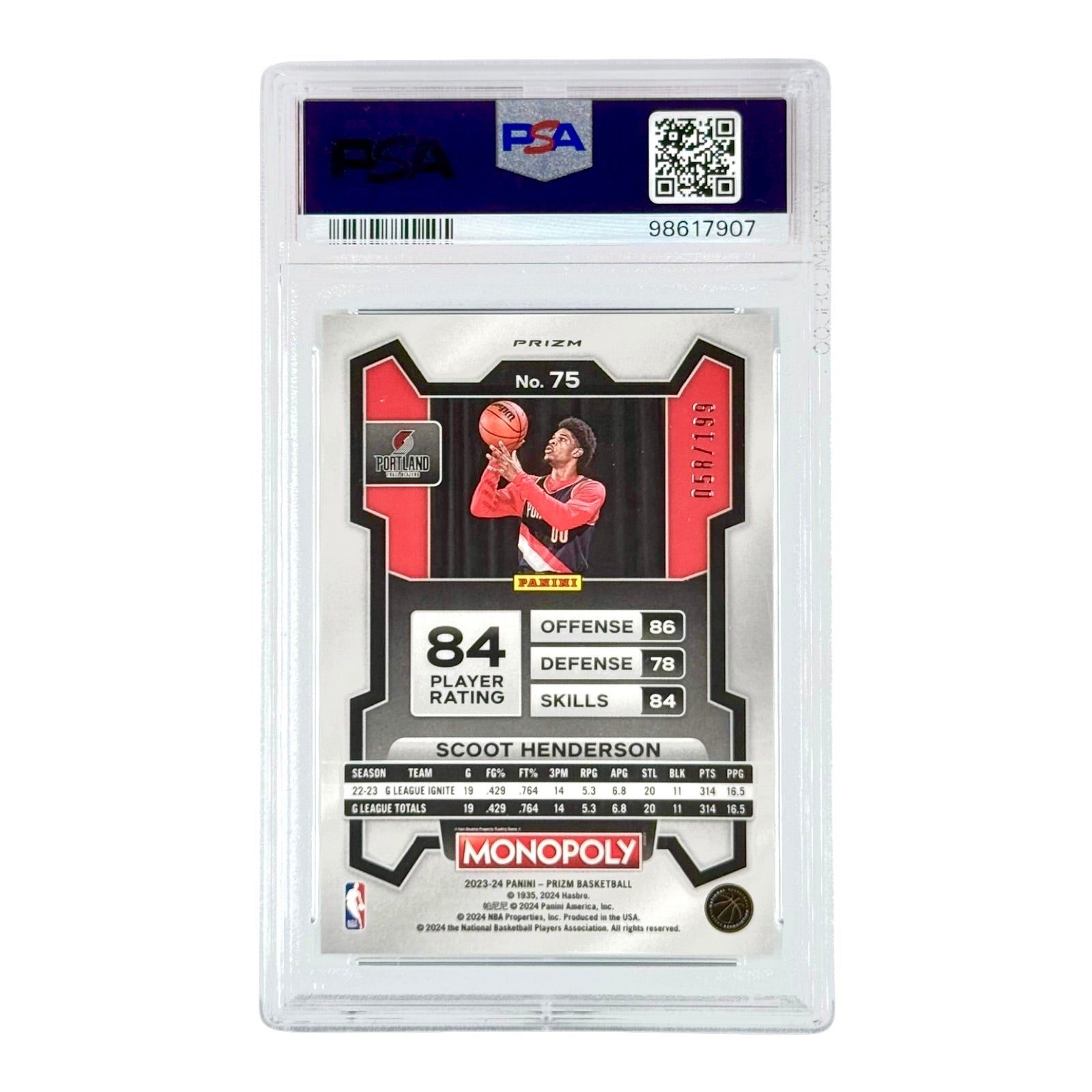 Scoot Henderson 2023 Prizm Monopoly Light Blue 058/199 Rookie RC PSA 10