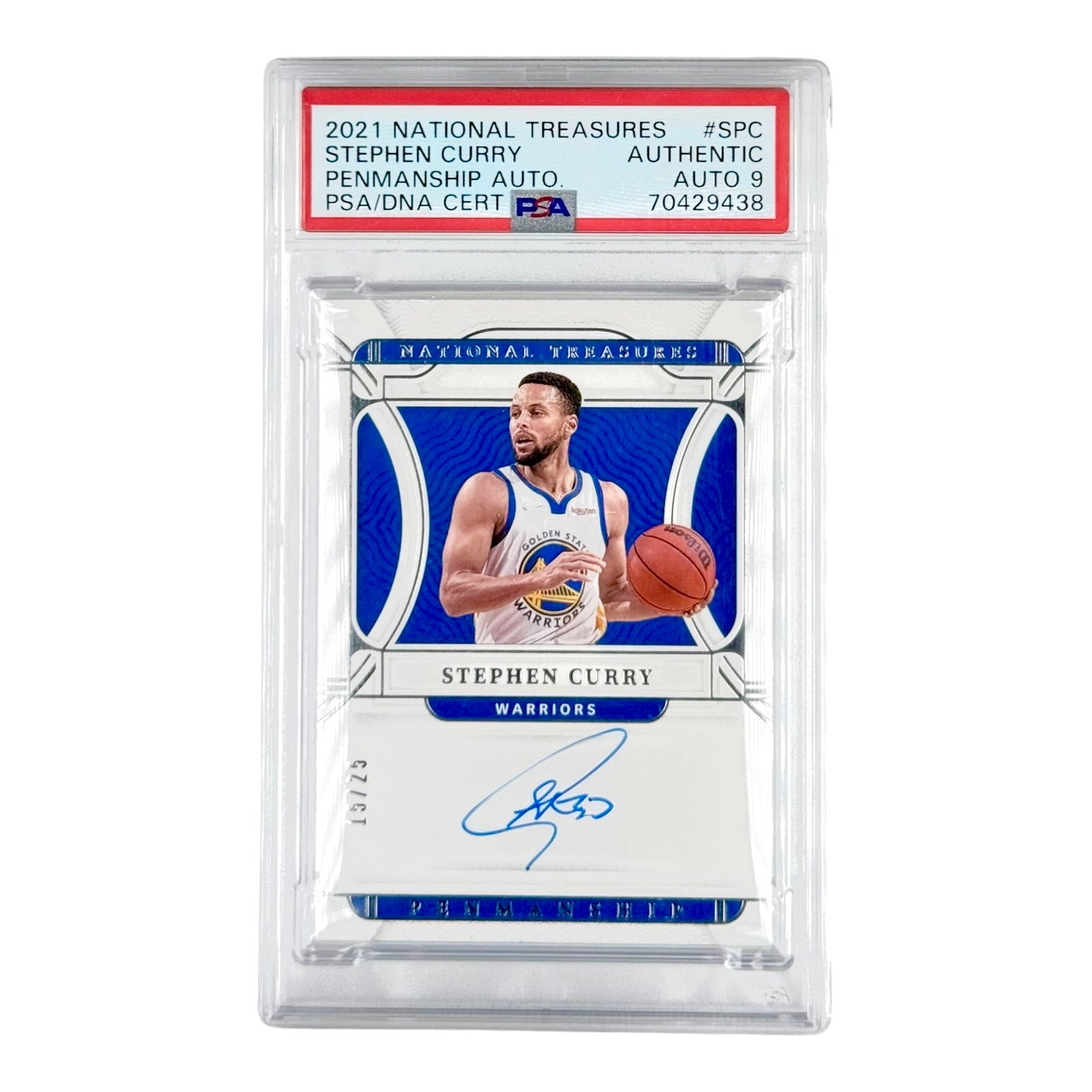 Stephen Curry 2021-22 Panini National Treasures Penmanship Auto 15/25 #SPC PSA Auto 9