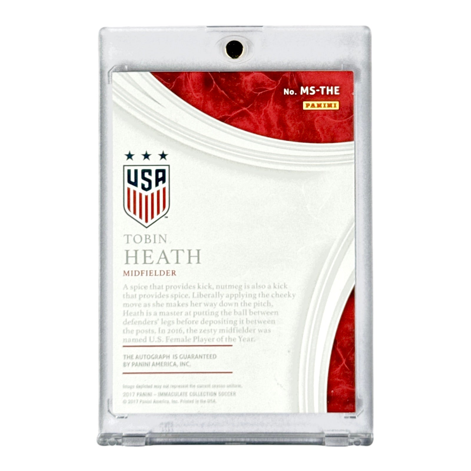 Tobin Heath 2017-18 Panini Immaculate Soccer Auto 35/75 #MS-THE