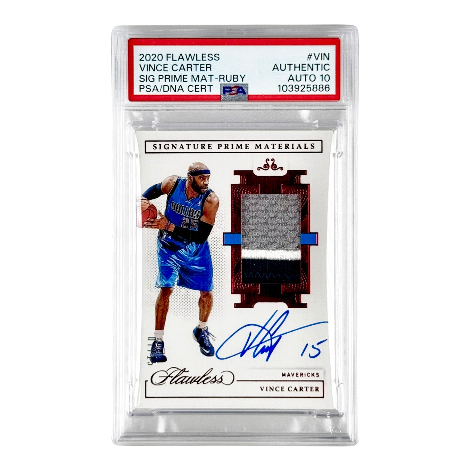 Vince Carter 2020 Flawless Ruby 3 Color Patch Auto 07/15 #VIN PSA Authentic Auto 10