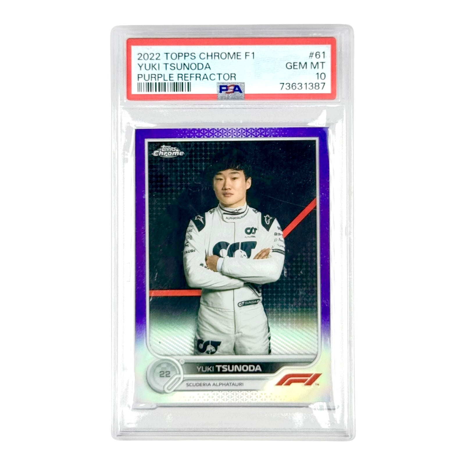 Yuki Tsunoda 2021 Topps Chrome F1 Purple Refractor 308/399 #61 PSA 10