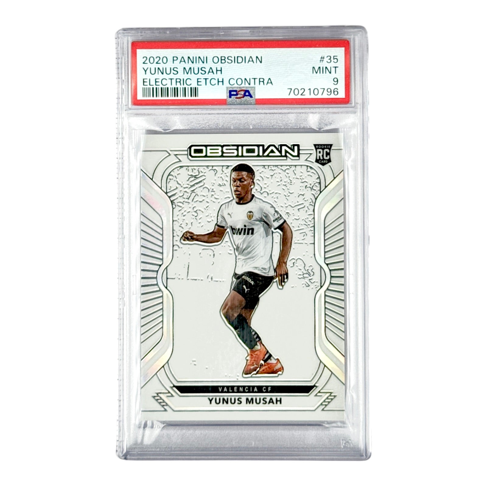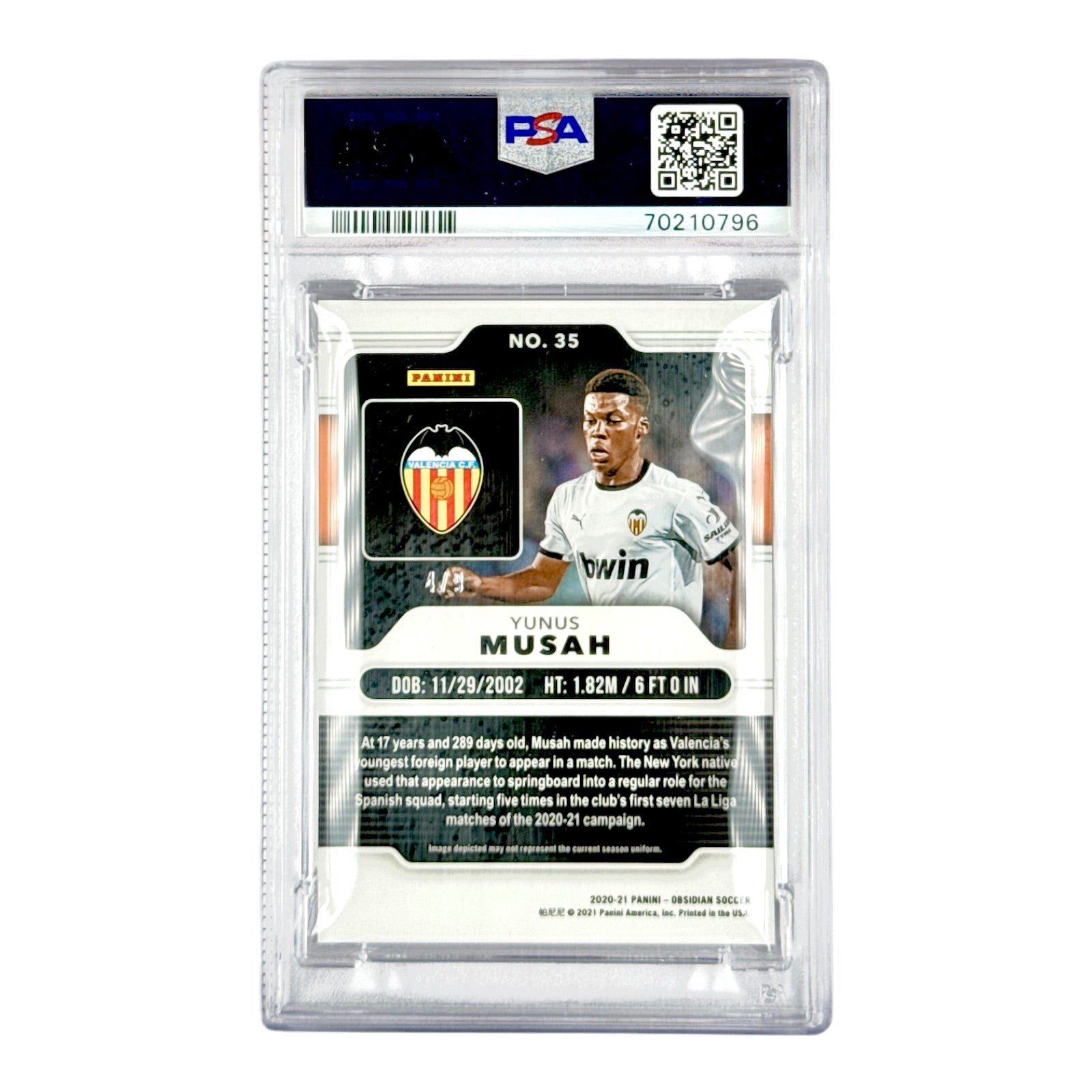 Yunus Musah 2020-21 Panini Obsidian Electric Etch Contra White Rookie RC 4/9 #35 PSA 9
